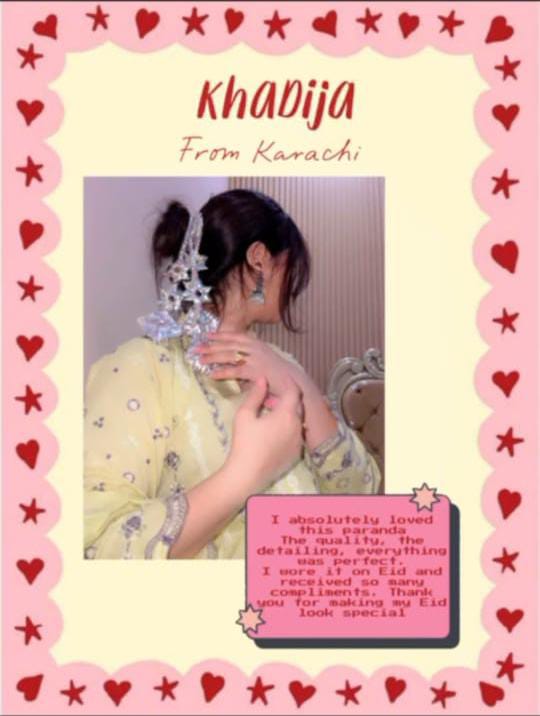 Shop nowI absolutely loved this paranda. The quality, the detailing, everything was perfect. I wore it on Eid and received so many compliments .Thank you for making my Eid look special